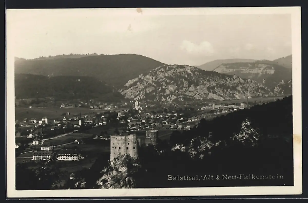 AK Balsthal, Alt & Neu-Falkenstein mit Ort aus der Vogelschau