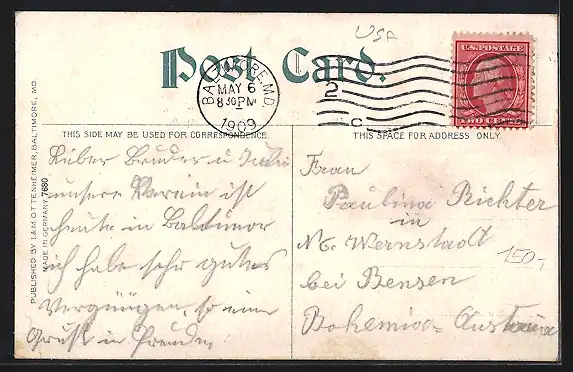 alte Ansichtskarte, gelaufen 1909, Eckknick re. unten, guter Zustand