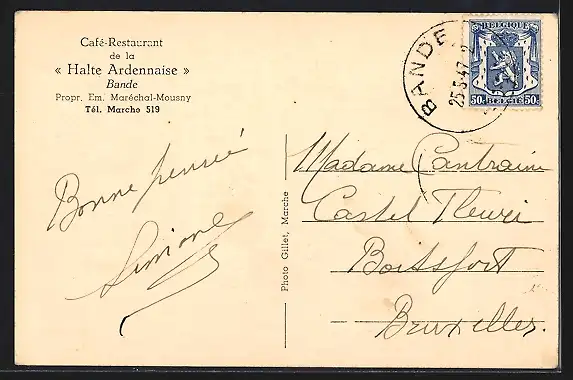 AK Bande, Lieu du massacre 1944, Café-Restaurant de la Halte Ardennaise E. Maréchal-Mousny