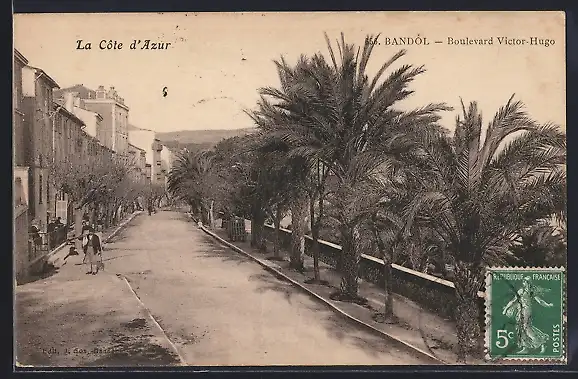 AK Bandol, Boulevard Victor-Hugo bordé de palmiers sur la Côte d`Azur