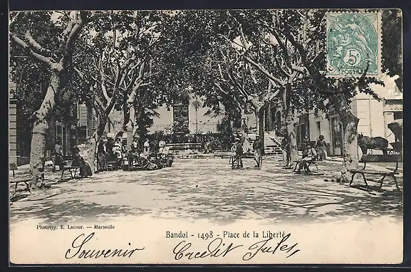 AK Bandol, Place de la Liberté avec arbres et passants
