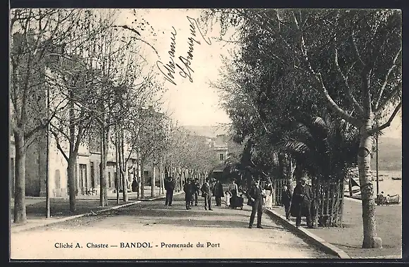 AK Bandol, Promenade du Port avec passants et arbres en hiver