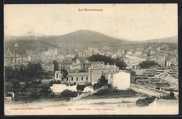 AK Banyuls, Vue générale du village et des montagnes environnantes