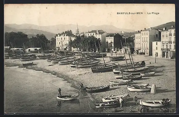 AK Banyuls-sur-Mer, La Plage avec barques sur le rivage