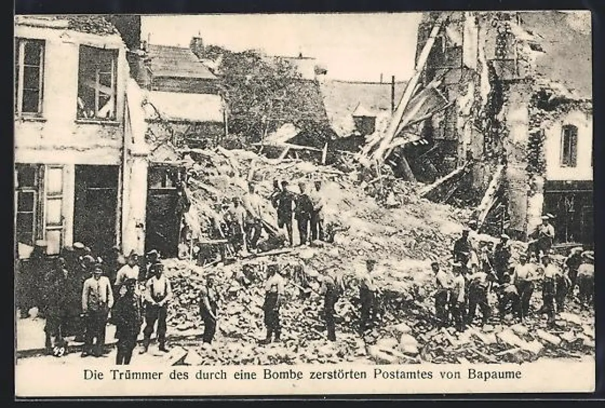 AK Bapaume, Les débris du bureau de poste détruit par une bombe