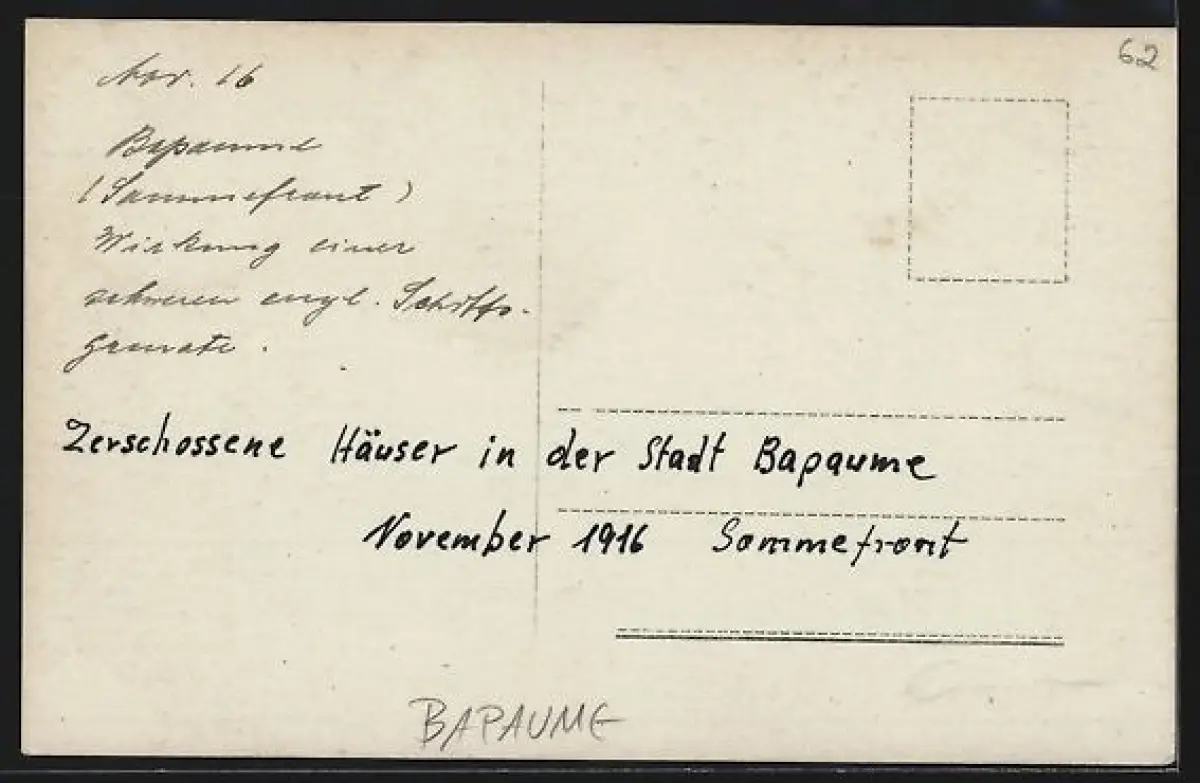 AK Bapaume, Maisons détruites dans la ville après un bombardement en novembre 1916