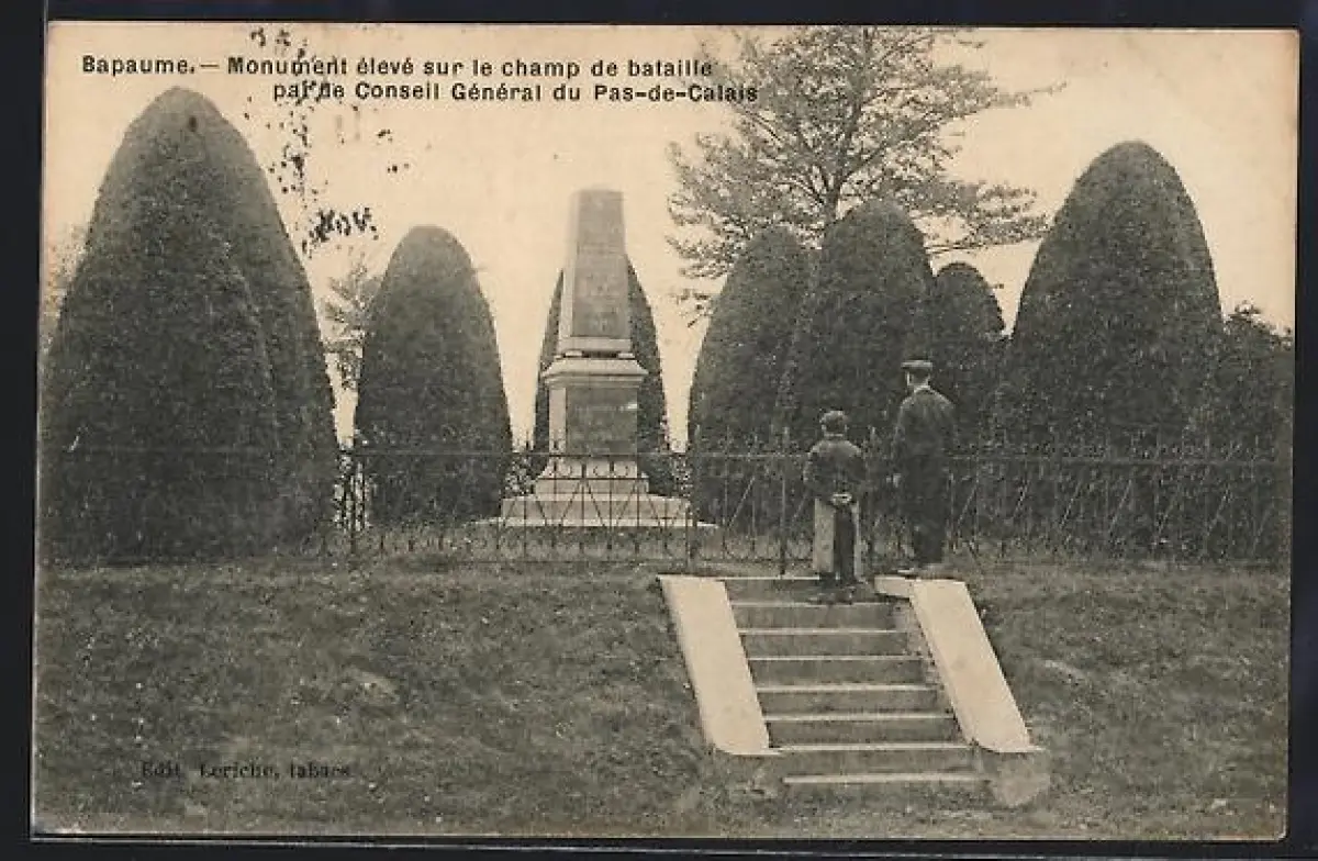 AK Bapaume, Monument élévé sur le champ de btaille par le Conseil Général du Pas-de-Calais
