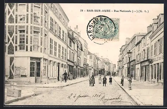 AK Bar-sur-Aube, Rue Nationale animée avec passants et bâtiments historiques