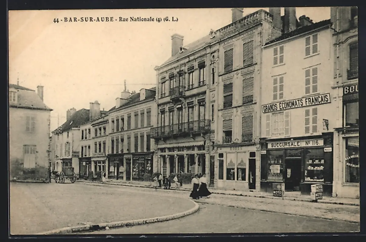 AK Bar-sur-Aube, Rue Nationale avec magasins et passants