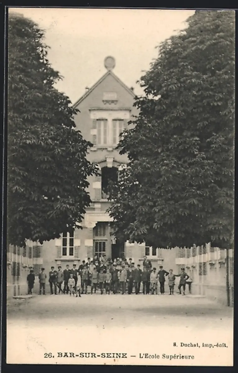 AK Bar-sur-Seine, L`École Supérieure et ses élèves devant le bâtiment