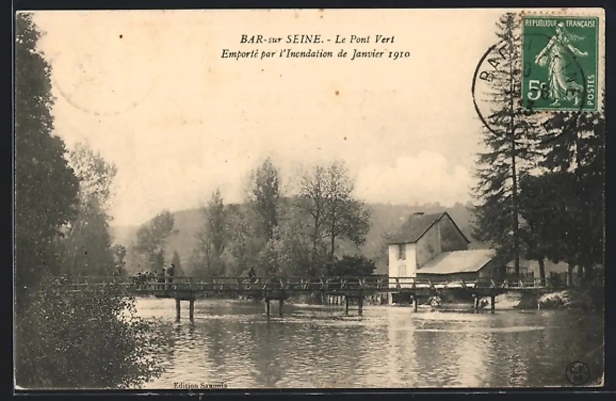 AK Bar-sur-Seine, Le Pont Vert emporté par l`inondation de janvier 1910