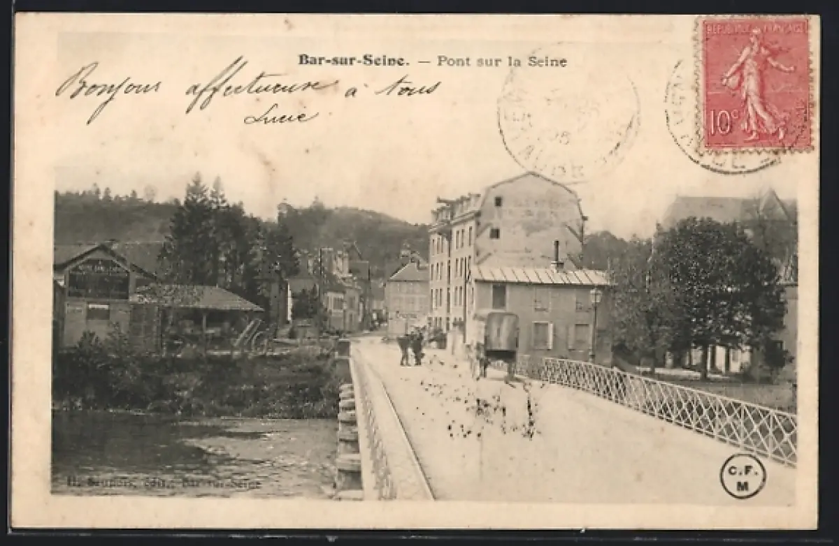 AK Bar-sur-Seine, Pont sur la Seine et vue sur les bâtiments environnants