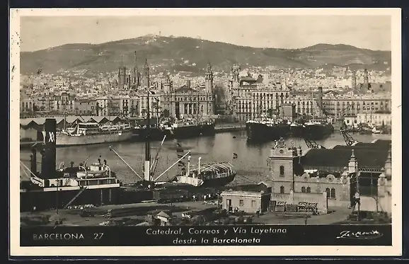 AK Barcelona, Catedral, Correos y Vía Layetana desde la Barceloneta