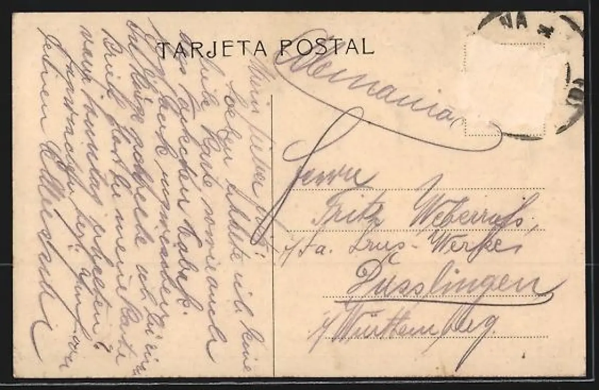alte Ansichtskarte, gelaufen, Briefmarke entfernt, rückseitig Oberflächenschaden, Bugspur li. oben, guter Zustand
