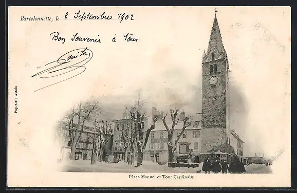AK Barcelonnette, Place Manuel et tour Cardinalis