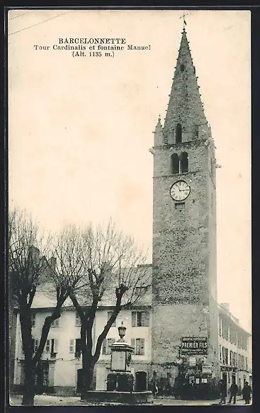 AK Barcelonnette, Tour Cardinalis et fontaine Manuel