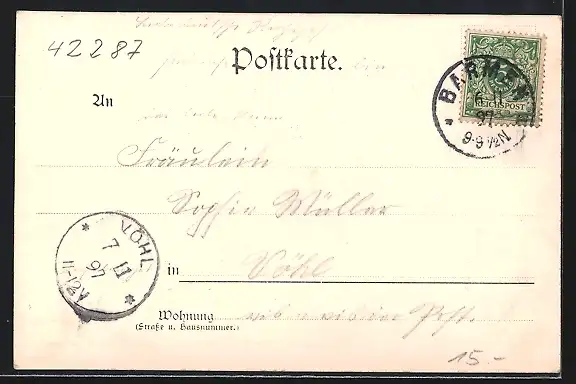alte Ansichtskarte, gelaufen 1897, guter Zustand