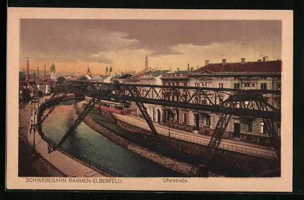 AK Barmen-Elberfeld, Schwebebahn an der Uferstrasse
