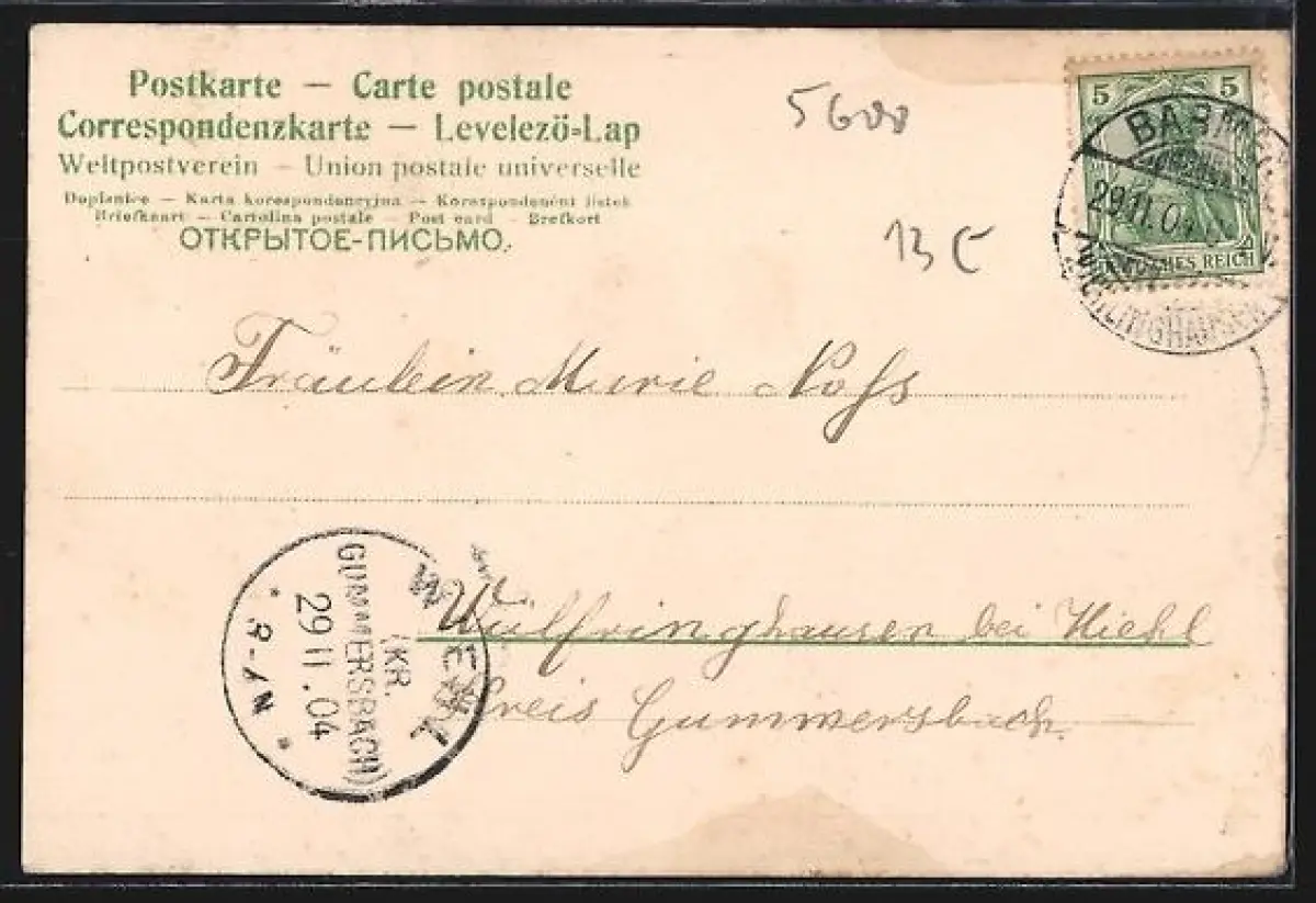 alte Ansichtskarte, gelaufen 1904, guter Zustand