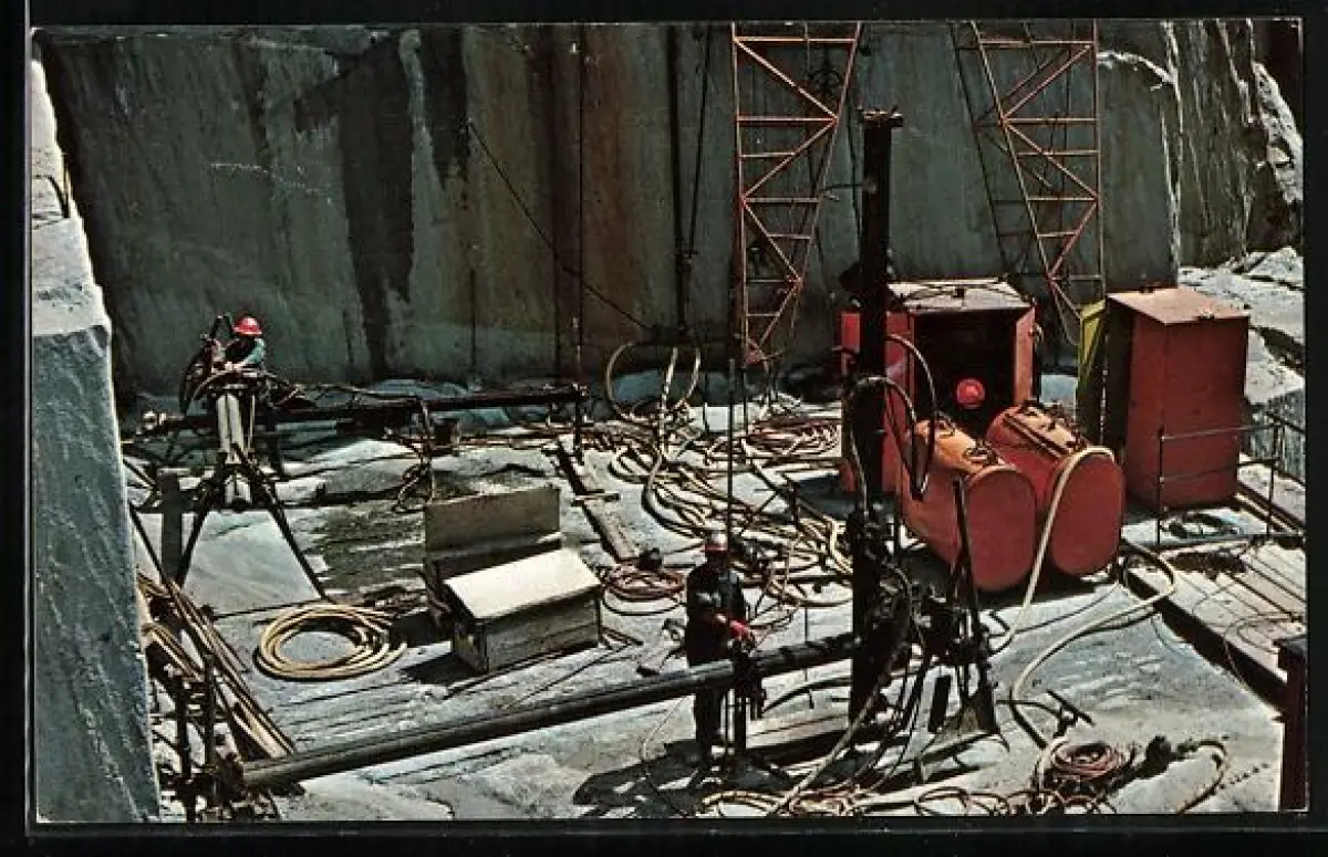 AK Barre, VT, Rock of Ages Granite Quarry, Workers with Machinery