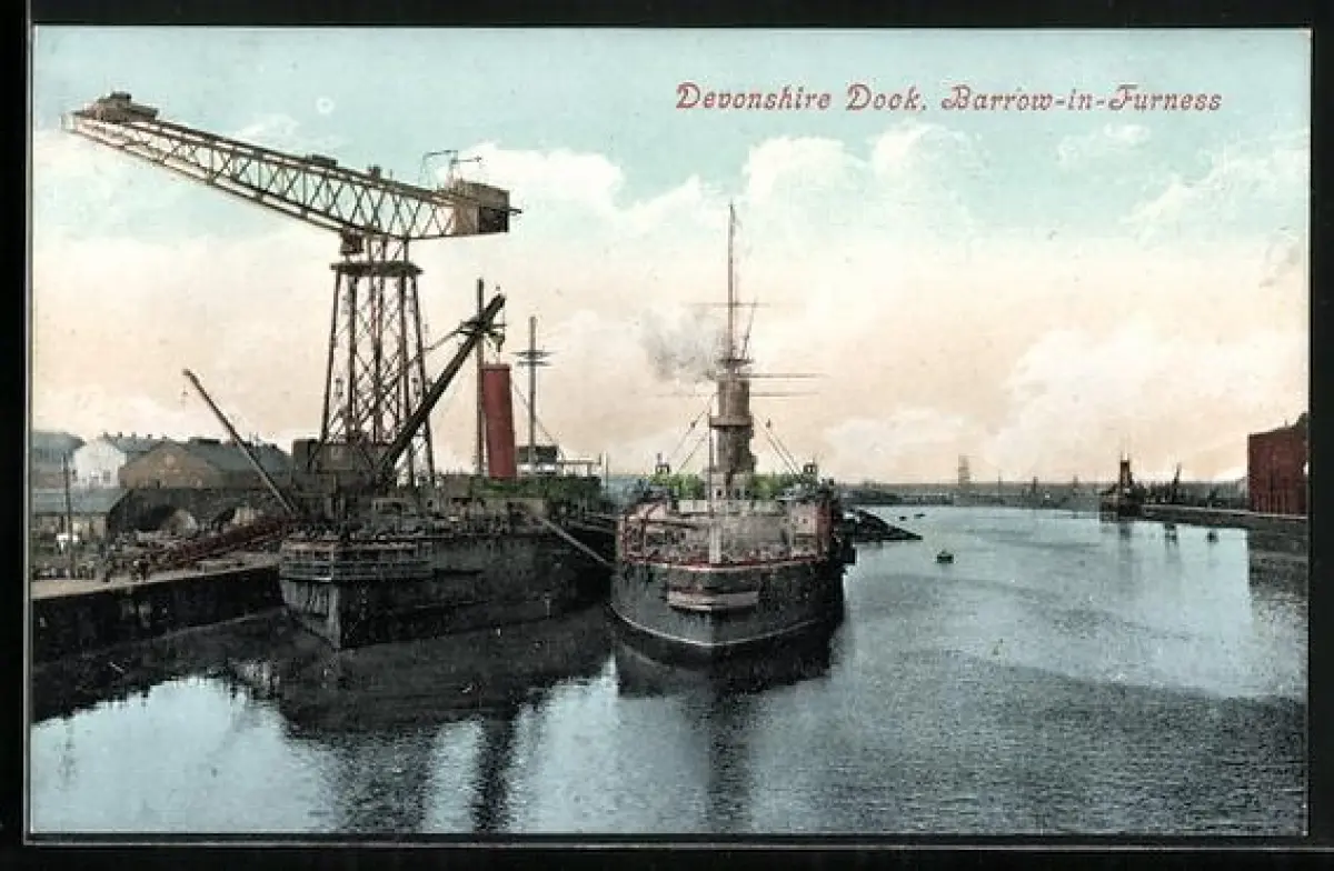 AK Barrow-in-Furness, Devonshire Dock, battleships at the pier