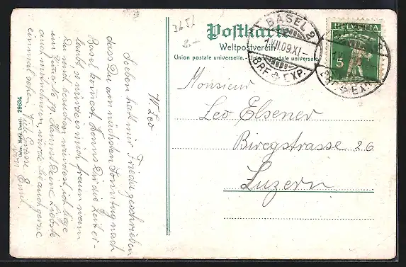 gelaufen 1909, Eckknick unten li., Ecken bestoßen, guter Zustand