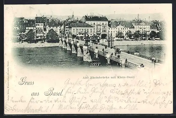 AK Basel, Alte Rheinbrücke mit Klein-Basel