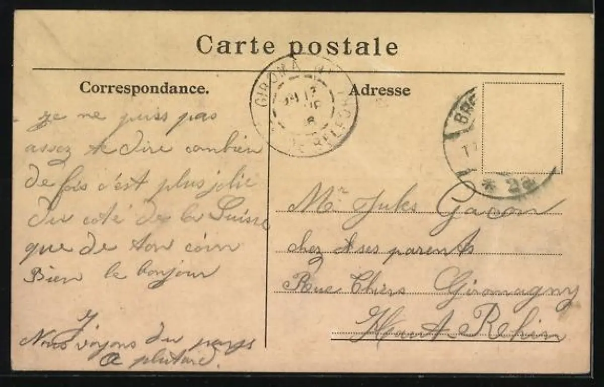 alte Ansichtskarte, gelaufen, Briefmarke entfernt, Stempelspur, guter Zustand