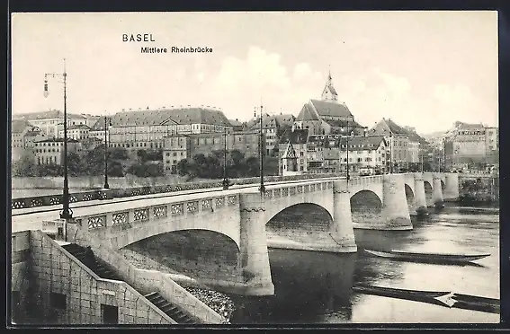 AK Basel, Blick auf die Mittlere Rheinbrücke
