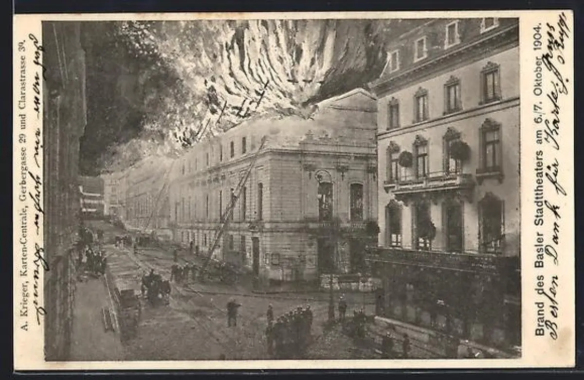 AK Basel, Brand des Basler Stadttheaters am 6. / 7. Oktober 1904