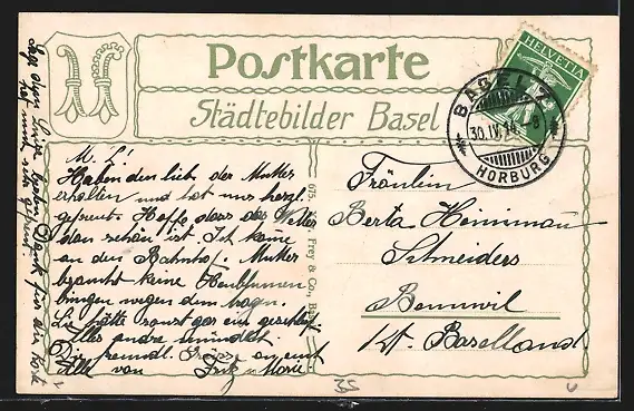 alte Ansichtskarte, gelaufen 1914, guter Zustand