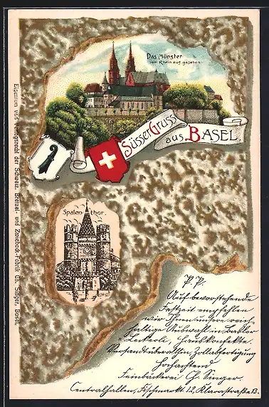 AK Basel, Das Münster, Spalenthor u. Wappen