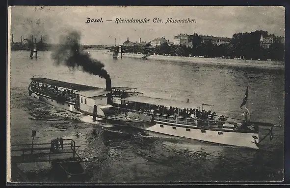 AK Basel, Der Rheindampfer Chr. Musmacher in Fahrt
