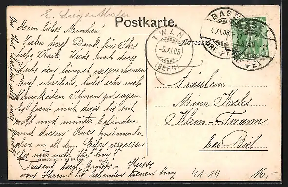 alte Ansichtskarte, gelaufen 1908, guter Zustand