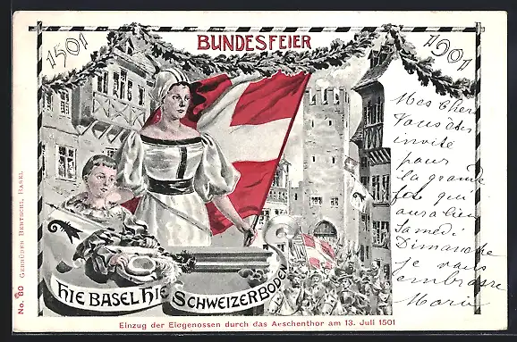 AK Basel, Einzug der Eidgenossen durch das Aeschenthor am 13. Juli 1501