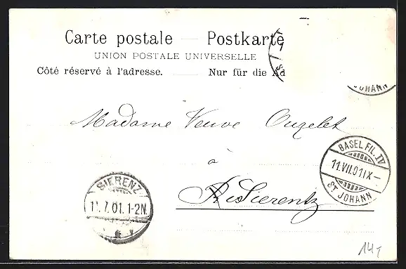 gelaufen 1901, Briefmarke entfernt, guter Zustand