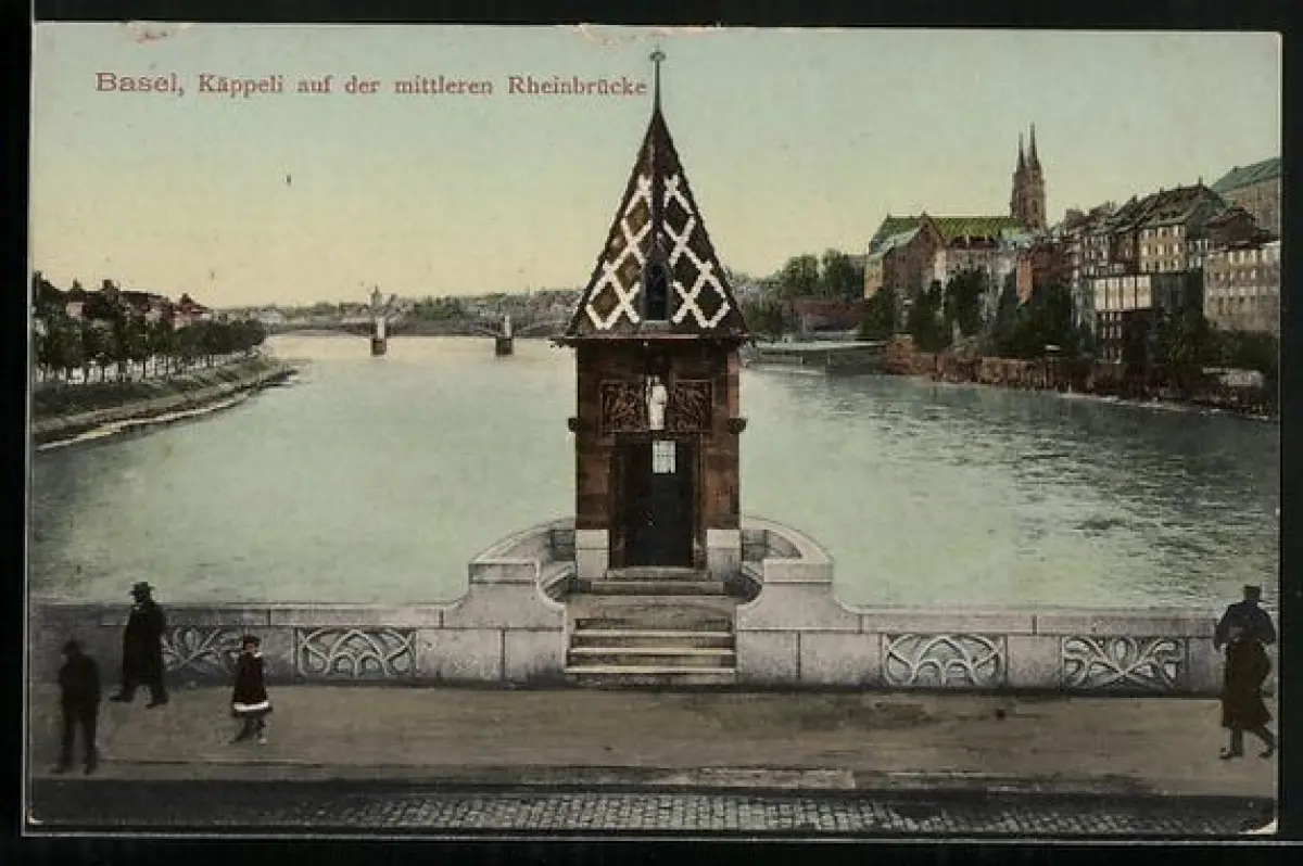 AK Basel, Käppeli auf der mittleren Rheinbrücke