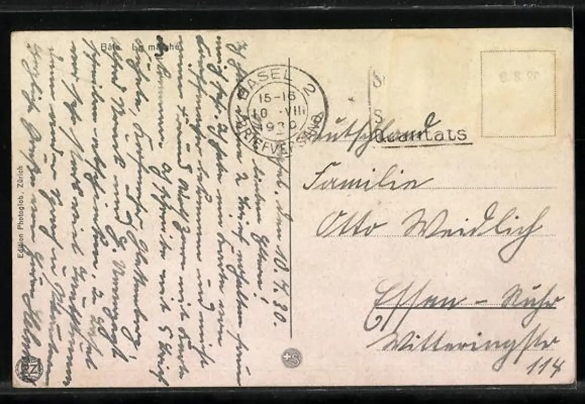 gelaufen 1930, Briefmarke entfernt, Eckknick li. oben, guter Zustand