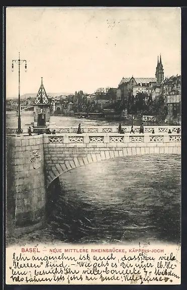 AK Basel, Neue mittlere Rheinbrücke und Käppeli-Joch