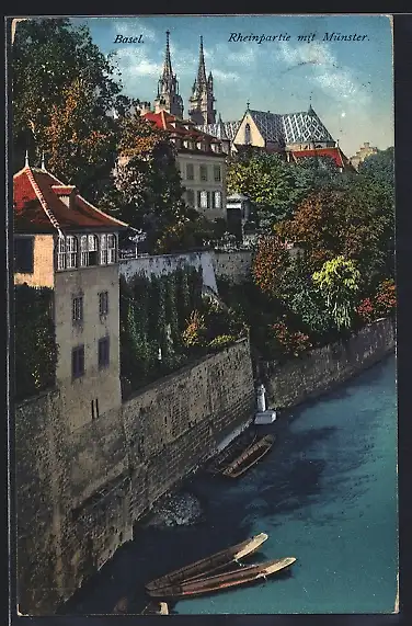 AK Basel, Rheinpartie mit Münster