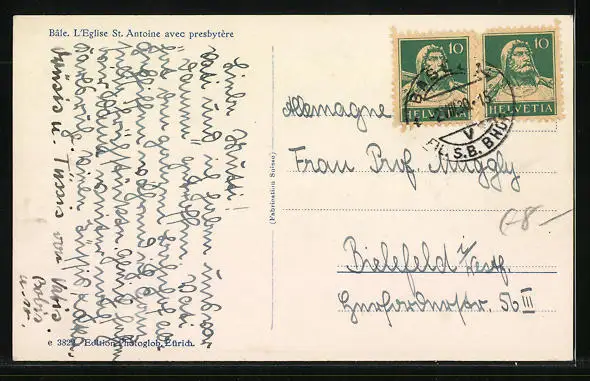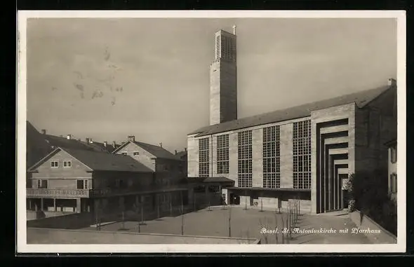 AK Basel, St. Antoniuskirche mit Pfarrhaus