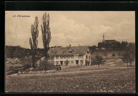 AK Basel-St. Chrischona, Hotel und Kirche im Frühling