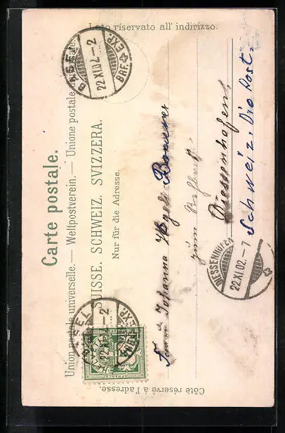 gelaufen 1902, Eckknick li. oben & re. unten, sonst guter Zustand