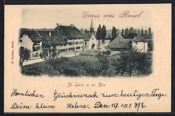 AK Basel, St. Jakob an der Birs, Ortspartie mit Kapelle