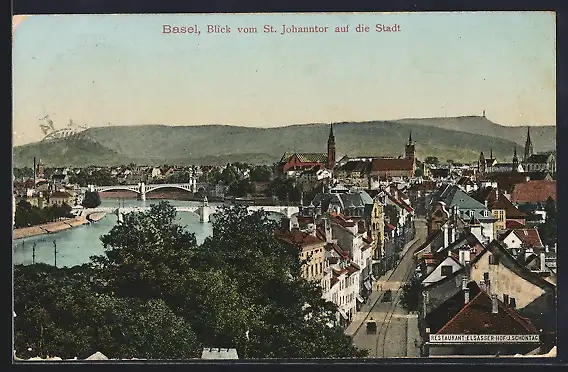 AK Basel, Stadtansicht vom St. Johanntor aus