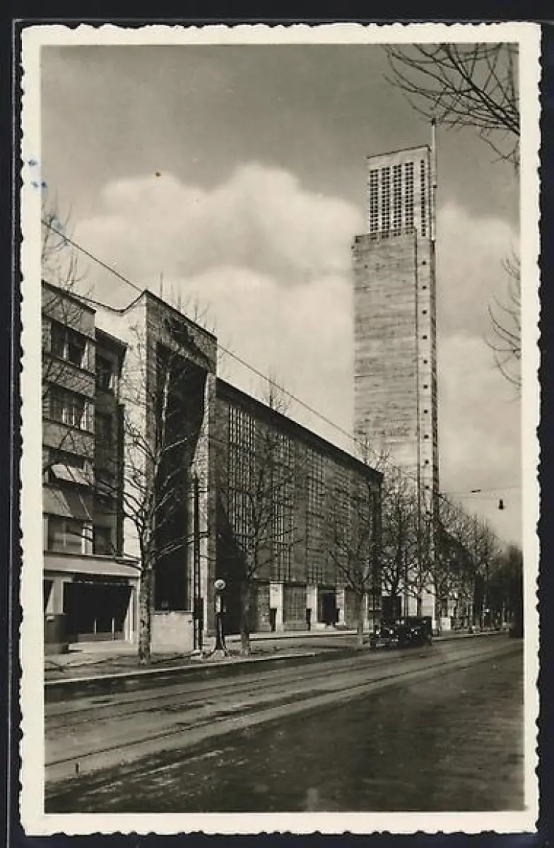 AK Basel, Strassenpartie mit St. Antoniuskirche
