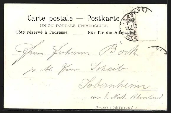 alte Ansichtskarte, gelaufen 1902, Briefmarke entfernt, guter Zustand