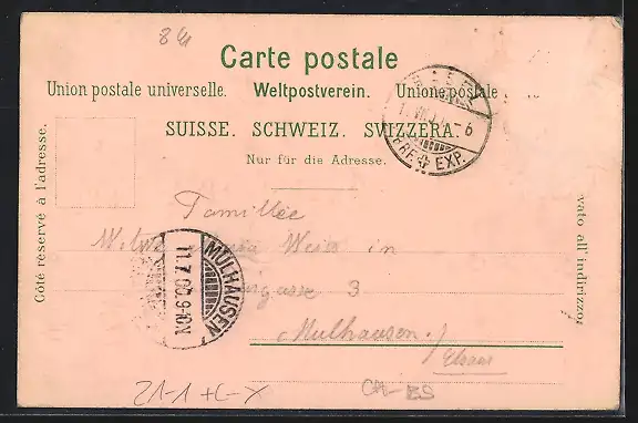gelaufen 1900, Briefmarke entfernt, guter Zustand
