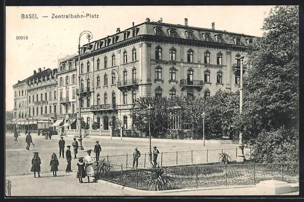 AK Basel, Zentralbahn-Platz mit Hotel Euler