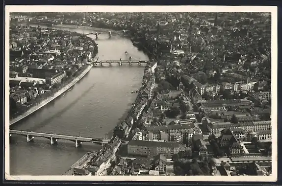AK Basel, die drei Rheinbrücken, Fliegeraufnahme